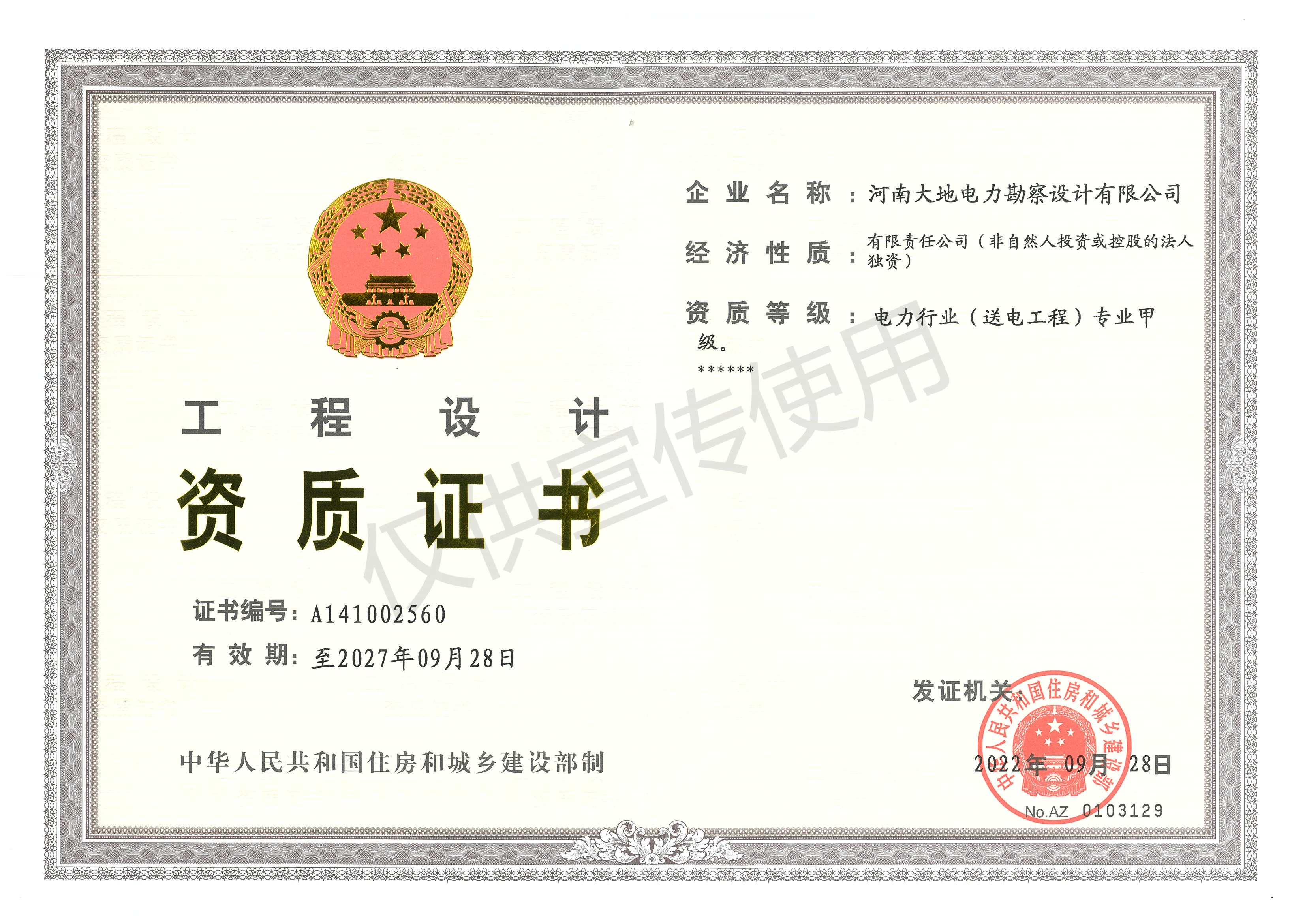 工程设计资质证书