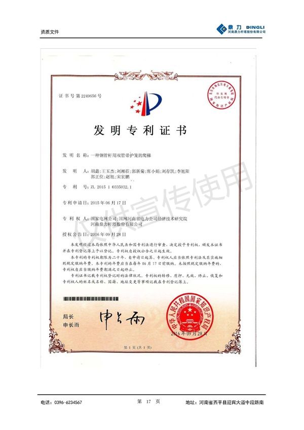 钢管杆用双管带护笼爬梯专利