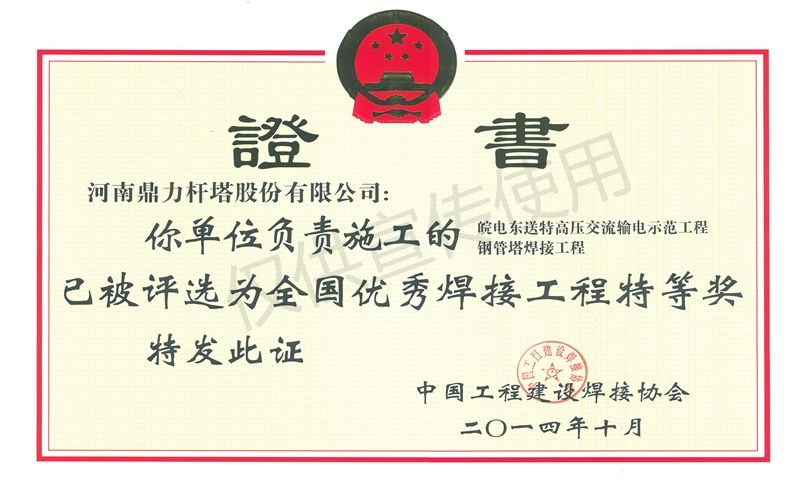 全国优秀焊接特等奖