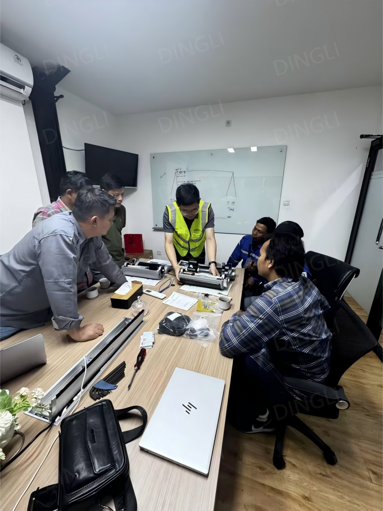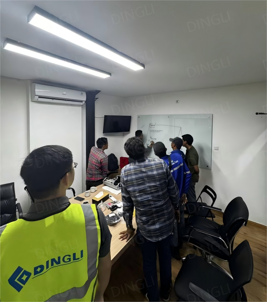 鼎力的线路故障检测系统DL300在印尼PLN成功挂网试运行。图为鼎力工程师在做停电安装前的培训工作。此产品能够诊断线路故障的发生原因和精确的故障位置,协助运维人员高效地抢修电力,大幅度节约停电时间,提高电网的可靠性和智能化。